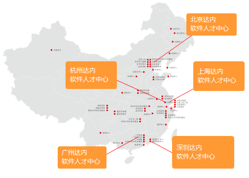 达内集团在北、上、广、深、杭5大核心城市设立了软件人才中心,辐射全国50多个城市,100多个就业服务中心,形成了覆盖全国的就业服务网络。实现了“一点受理,全国联动”,“一地学习,全国就业”的就业服务理念。