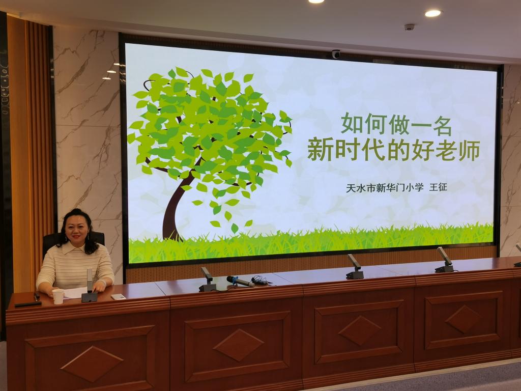天水市新华门小学王征老师作了题为《如何做一名新时代的好老师》的培训讲座。她结合自己多年的工作经验,解读了四有好老师的标准。列举自己班主任工作中亲身经历的一件件感人至深的事例,不仅使大家体会到师者可以成就学生未来的深意,也让在座的同学们更加坚定了做一名新时代好老师的信念。会后,同学们就自己的感悟和收获与王老师进行了交流。