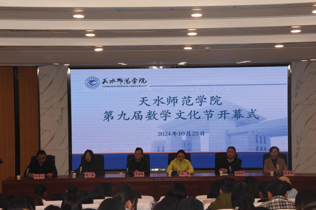 10月25日下午,天水师范学院第九届数学文化节开幕式在一号报告厅举行。文化节以“润数学文化,共赴数学‘π’对”为主题。学校团委书记刘颖,best365中国官方网站全体领导班子成员、辅导员、师生代表等共计200余人参加。开幕式由学院党委副书记赵慧主持。