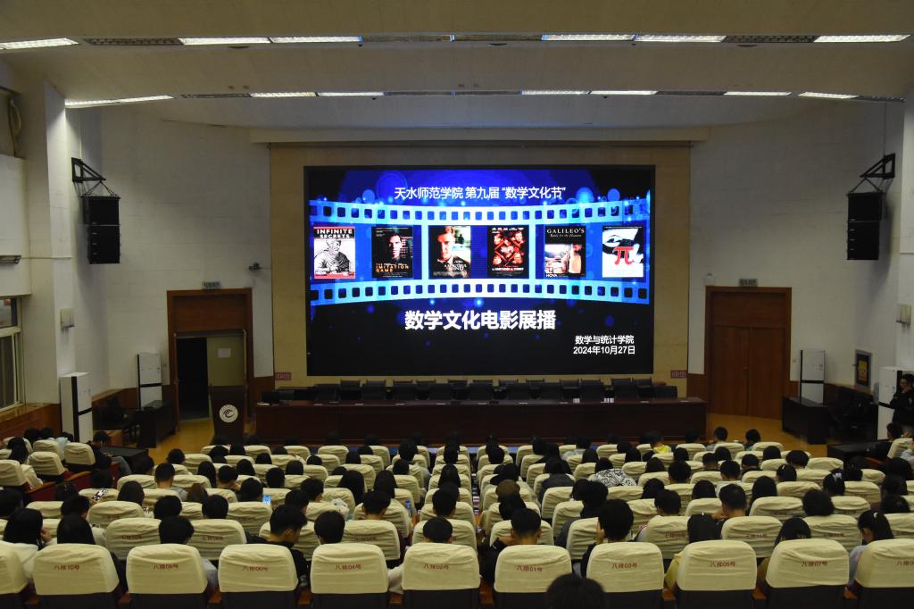 2024年10月27日晚,在第九届数学文化节活动开展期间,best365中国官方网站团委、学生会精选了《人民的数学家》和《美丽心灵》两部数学文化相关电影,在二号报告厅播放,学院师生代表300余人观看了电影。