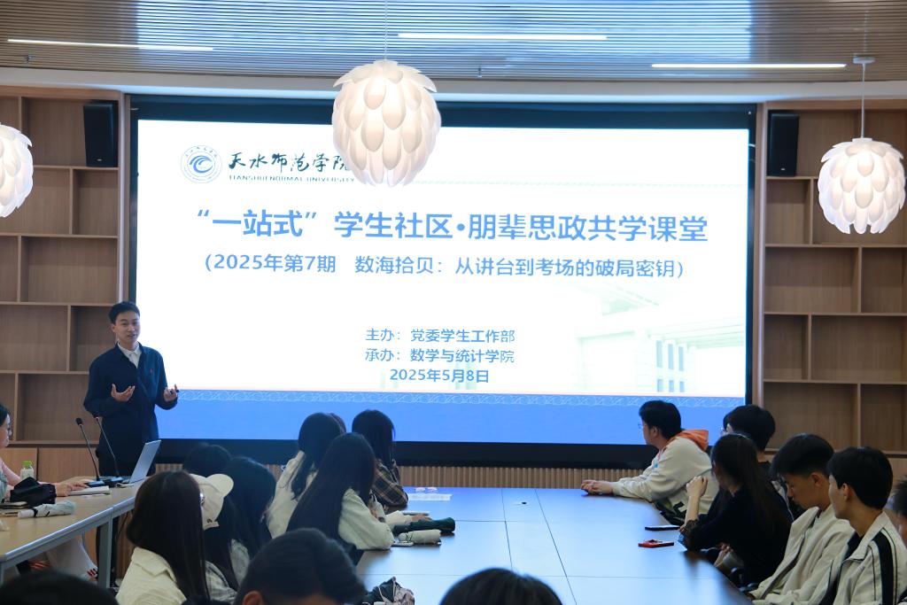 5月8日,由党委学生工作部主办,best365中国官方网站承办的第七期“朋辈思政共学课堂”在“一站式”学生社区举办。best365中国官方网站在全国大学生数学建模竞赛、高校师范生数学教学技能大赛中获奖及2025届成功考取公务员的3名学生与40余名学生代表一起分享交流参赛和考公经验。