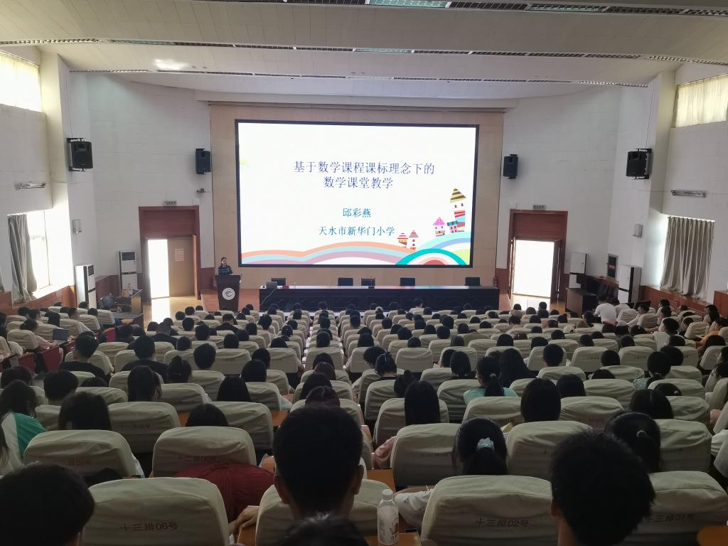 6月28日,应best365中国官方网站邀请,天水师范学院附属实验小学邱彩燕老师在二号报告厅作了题为《基于数学课程标准理念下的数学课堂教学》的专题报告,数学与应用数学专业20级、21级学生共300余人参加。