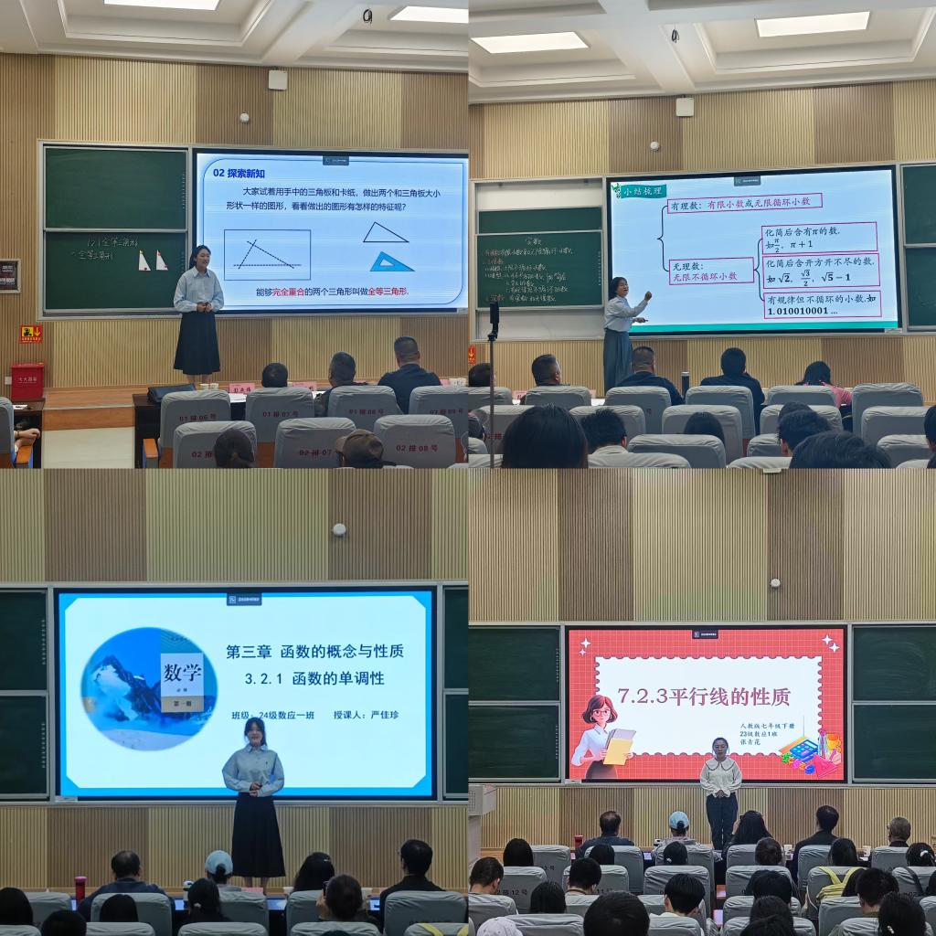决赛现场精彩纷呈,有选手将天水名胜元素融入几何课堂,创新情境教学法;有选手结合智慧城市案例,生动演绎大数据分析的现实意义;还有选手自制模型和教具动态演示直线和平面的位置关系,赢得评委高度称赞。最终从模拟授课、板书设计、课件制作、语言组织等维度进行综合评价,推选出4名选手参加天水师范学院师范生教学技能大赛。大赛还分别评选出8个最佳课件制作奖和8个最佳板书设计奖。
